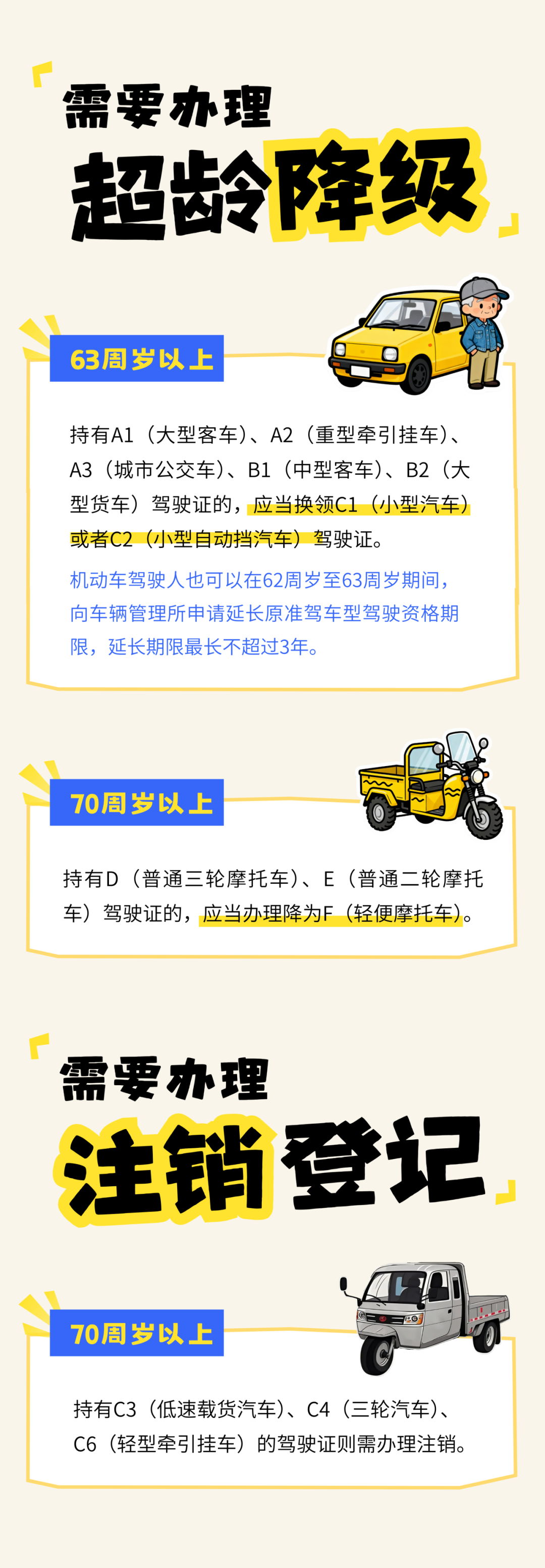 70周岁及以上的驾驶人,在满足相应身体条件下,可准驾相应车型。